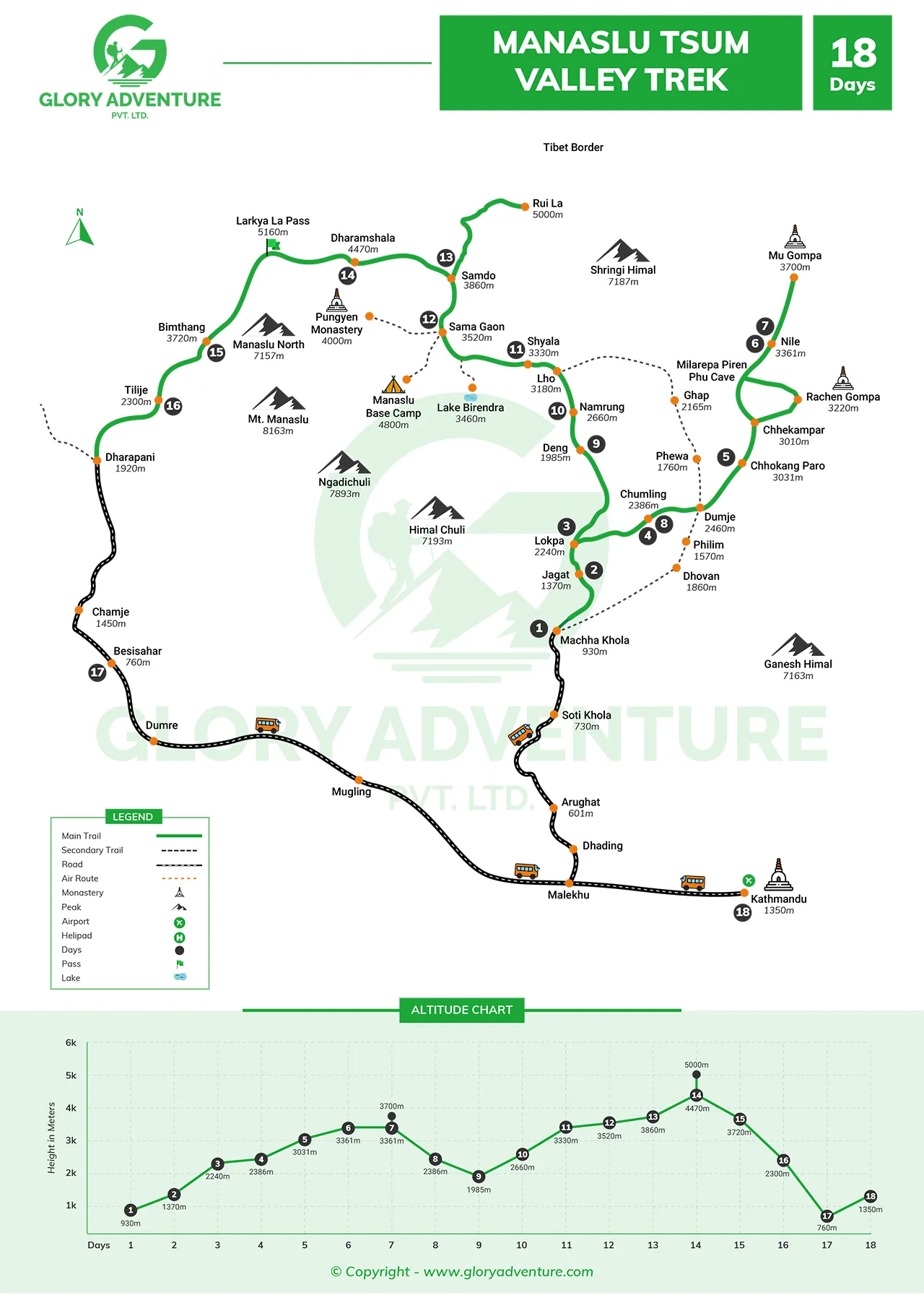 Altitude sickness is a possibility on this Manaslu Tsum Valley Trek, but the chances are pretty low as Glory Adventure’s guide will teach you the preventive measures. He will also keep an eye on your oxygen levels to look for early signs of altitude sickness. In case of an emergency, we will contact the evacuation services.