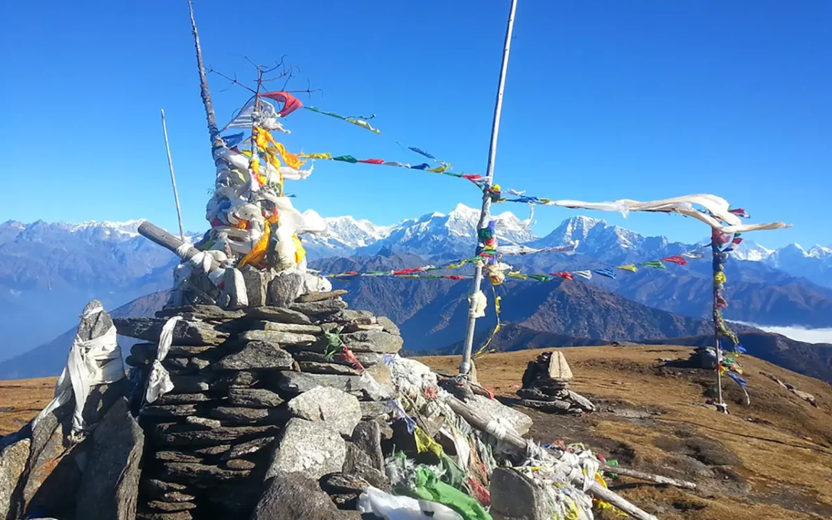 The sunrise from the top is a must-experience moment, as it offers a 360° view of the sun coming up, lighting eight of the highest peaks in the world with its fiery rays. The descents will pass by the serene Thupten Choeling Monastery and through regions with mani walls and prayer flags. You will come away from the trek to Pikey Peak feeling rejuvenated, motivated, and culturally enhanced.